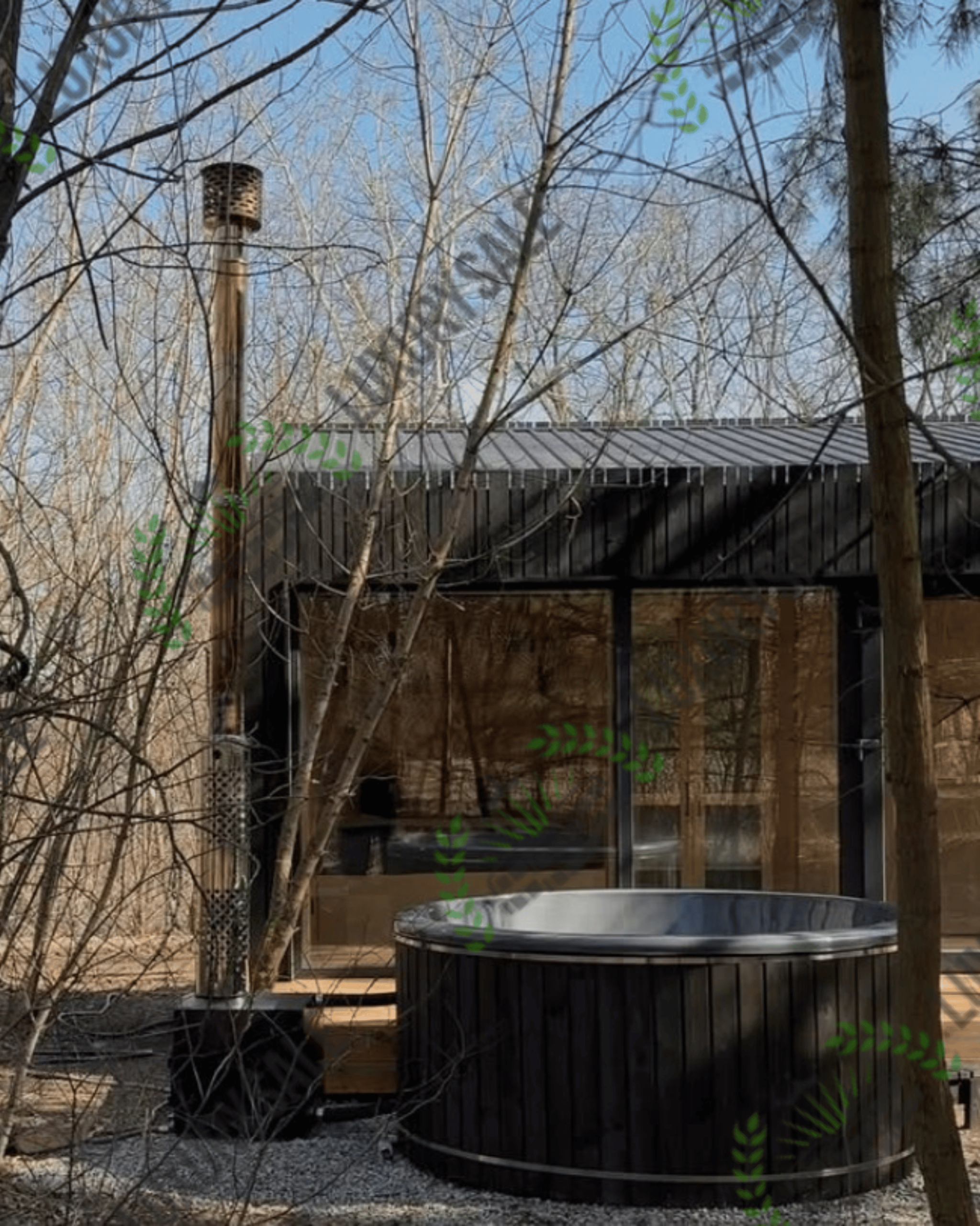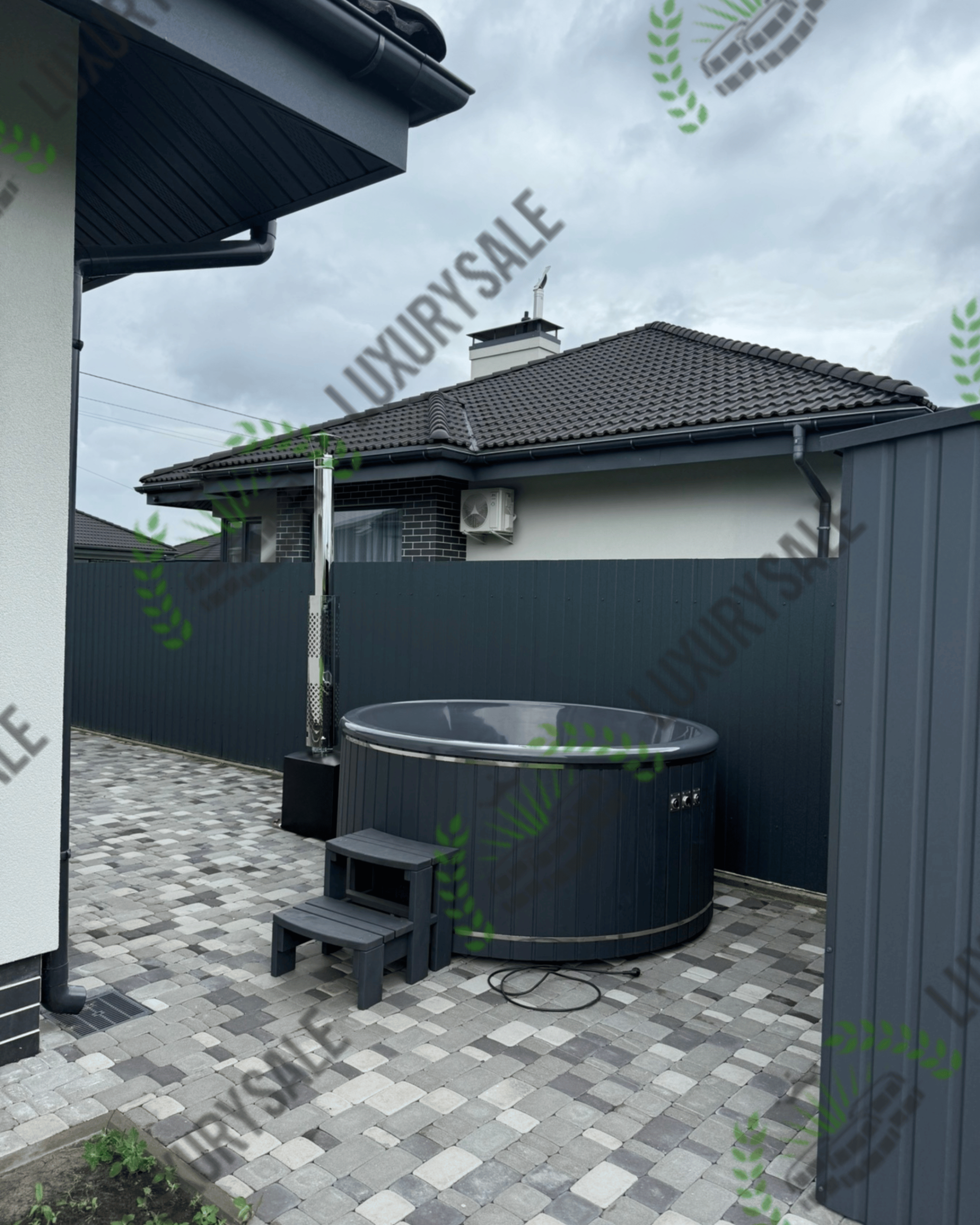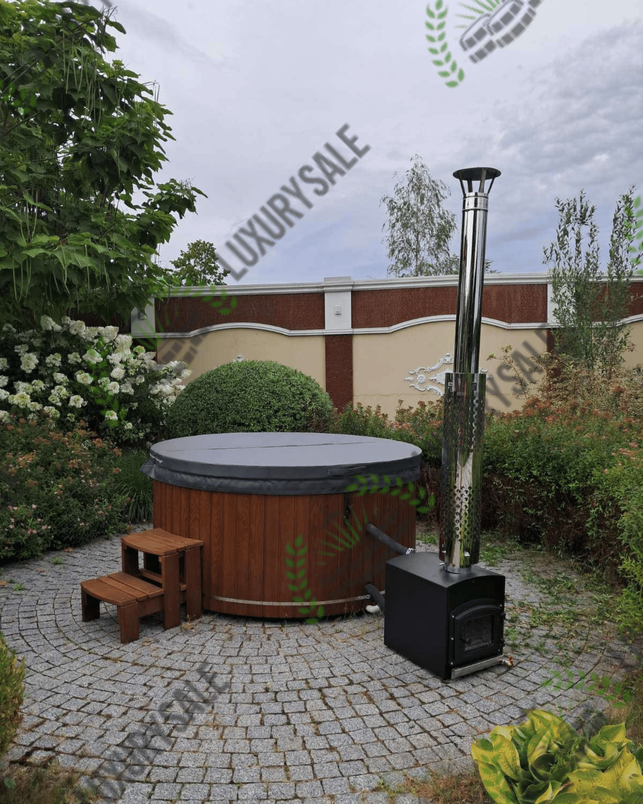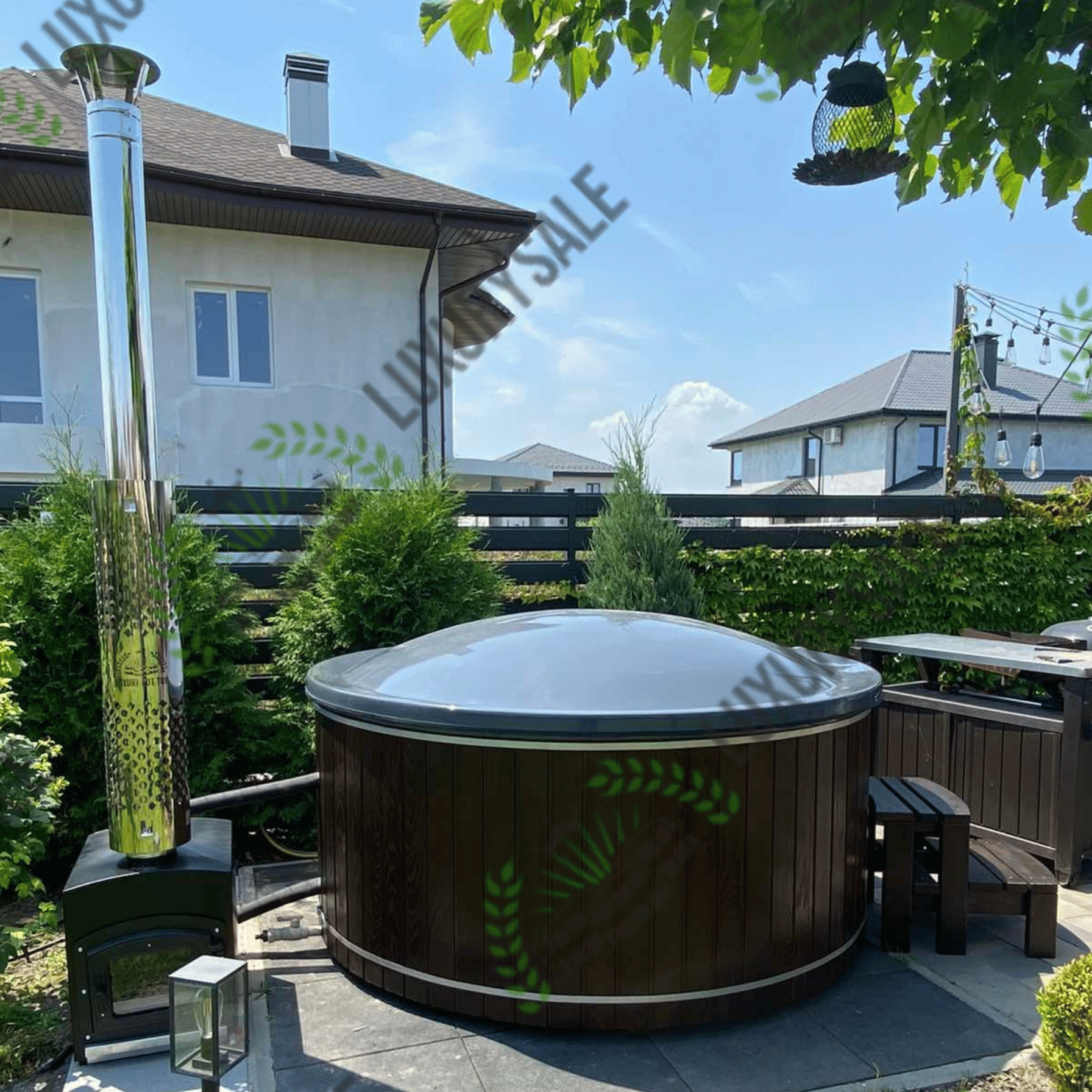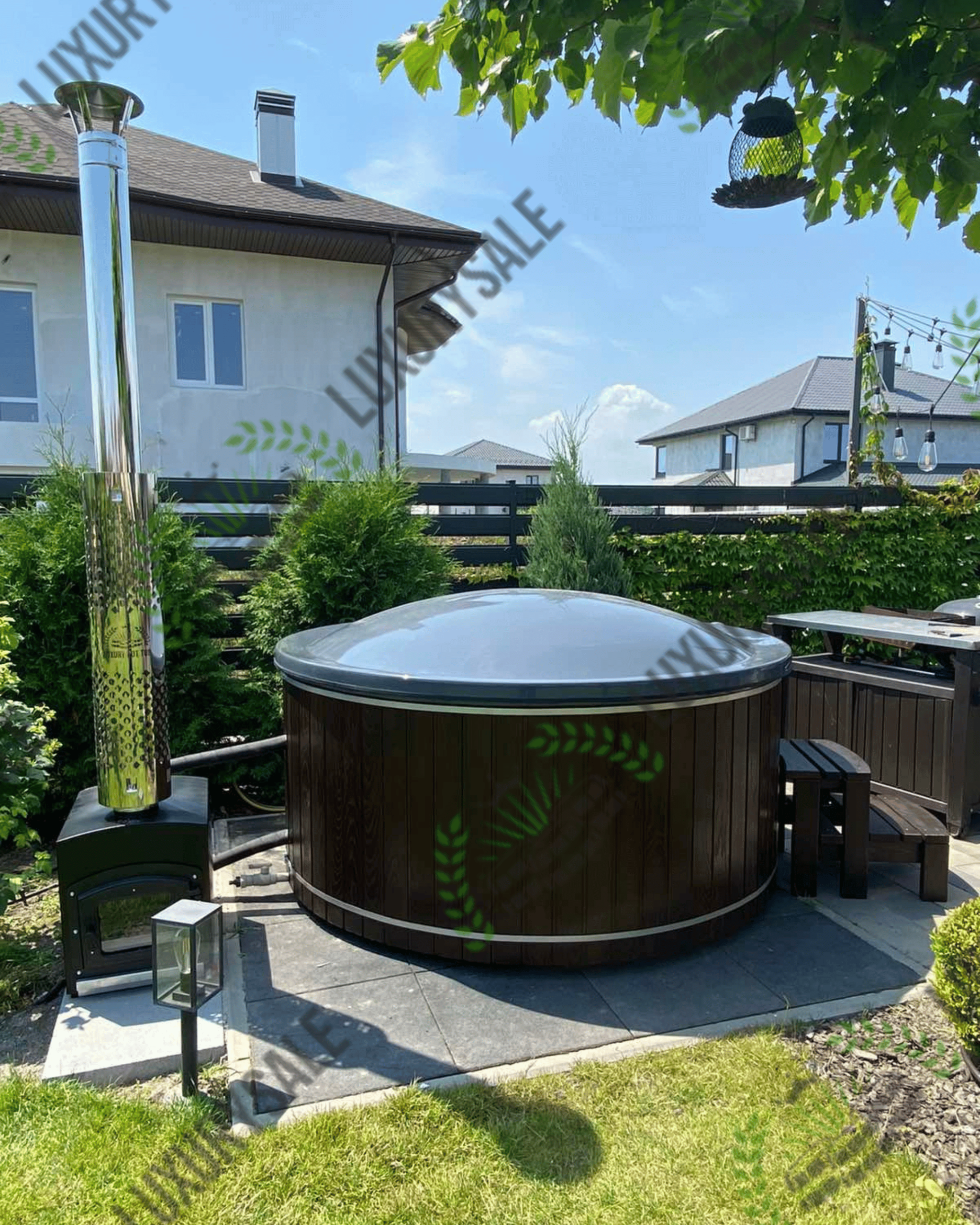 Зовнішня піч стоїть окремо від чаші на безпечній відстані і забезпечує швидке нагрівання води
