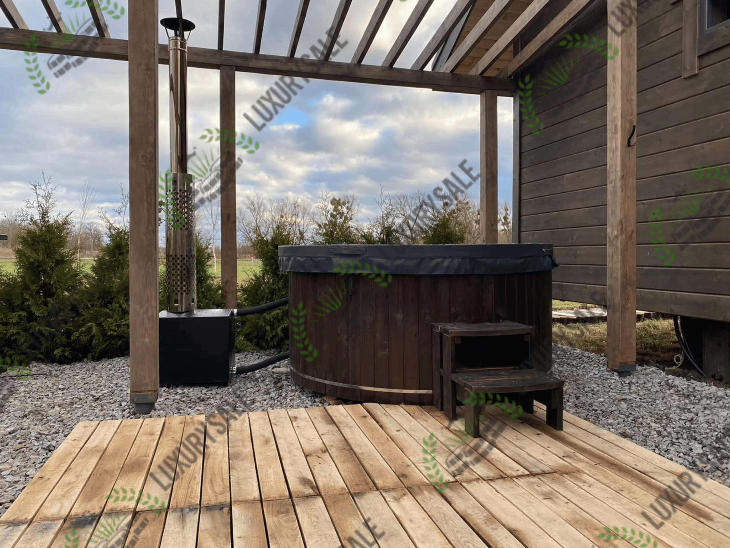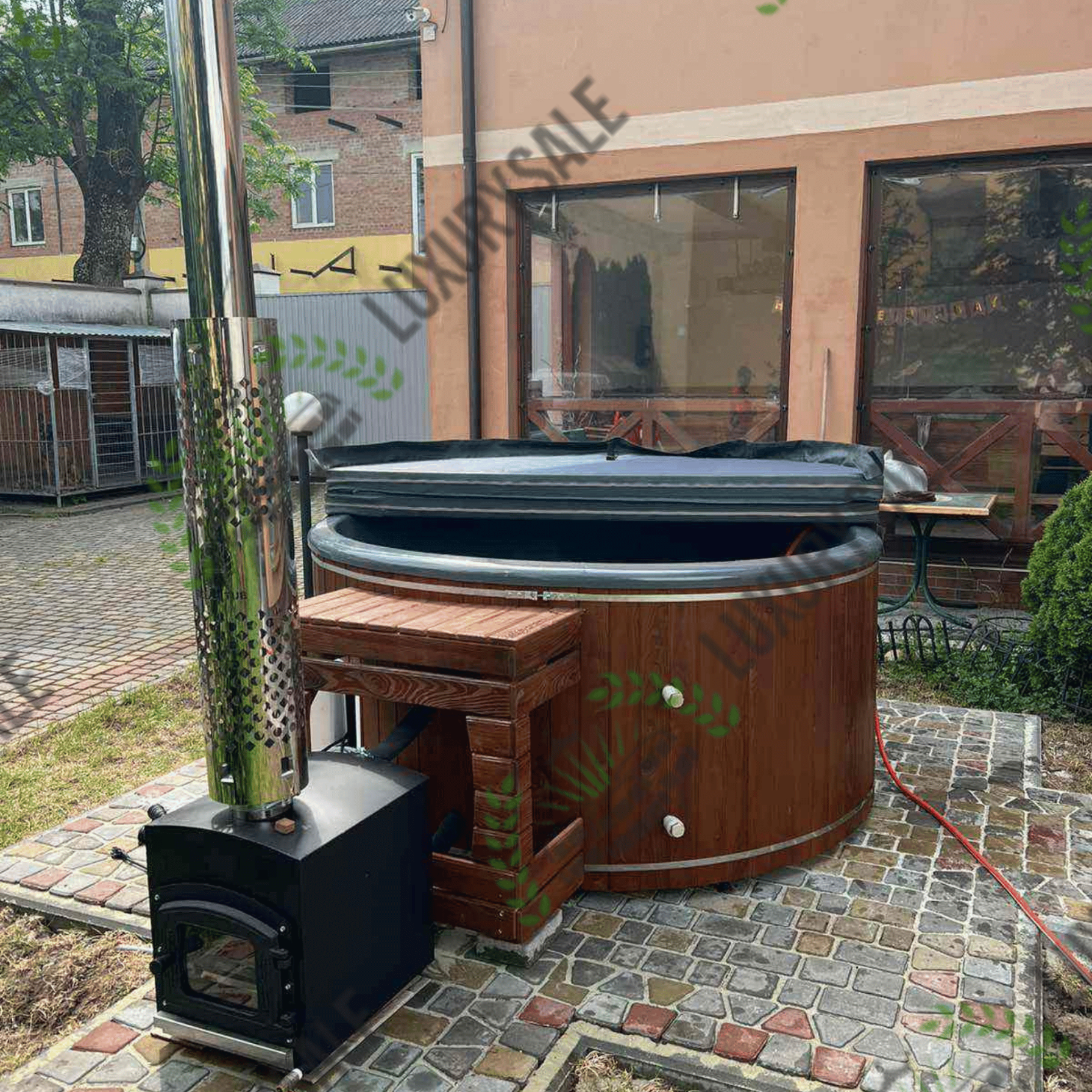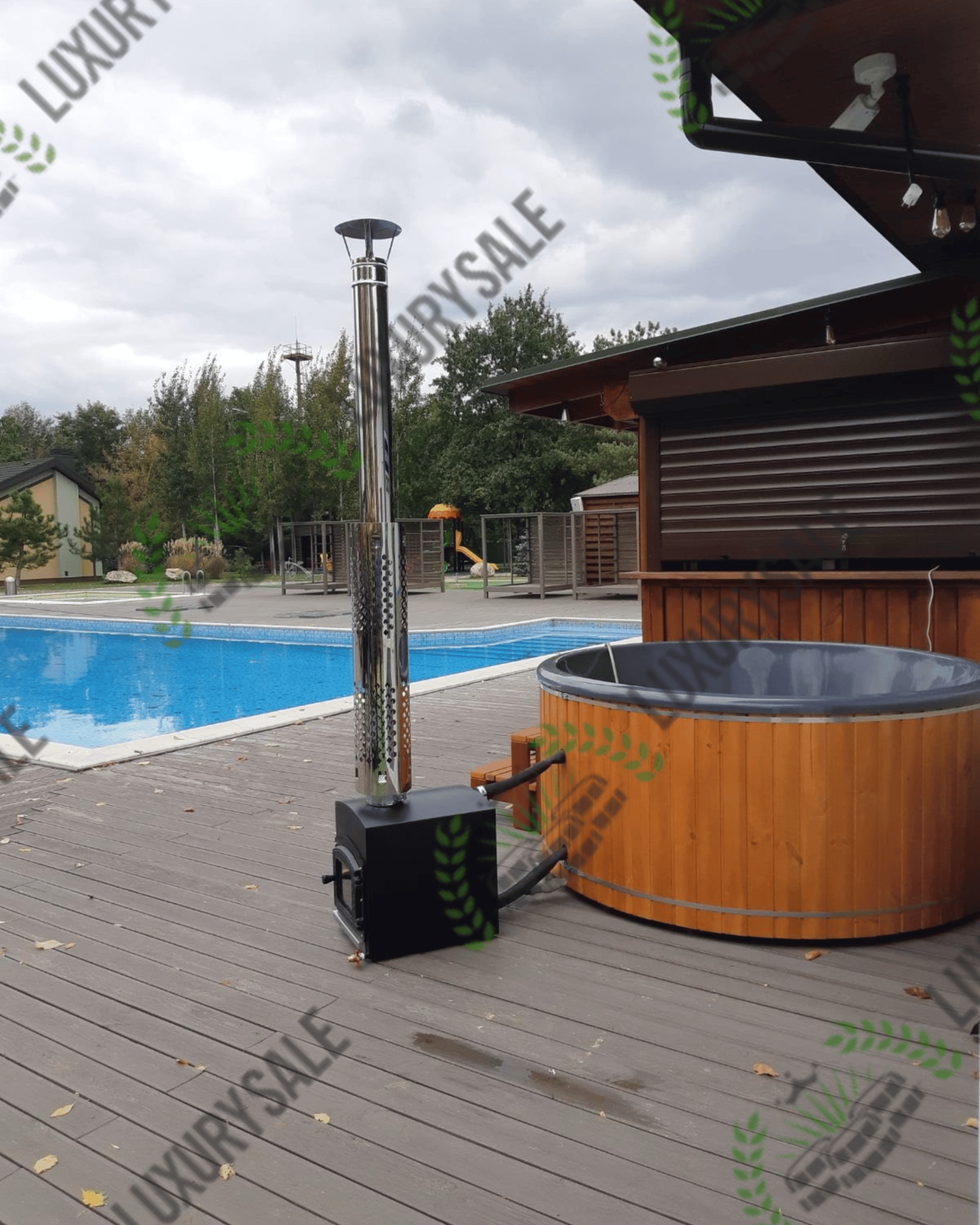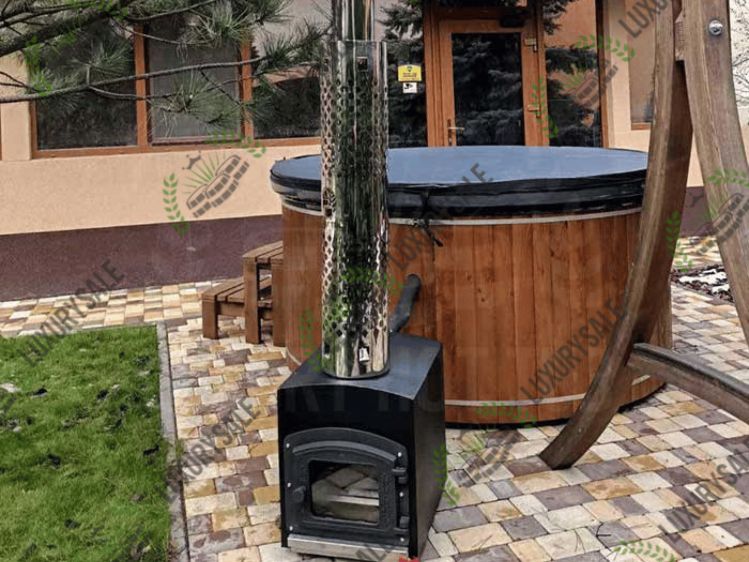 Зовнішня піч стоїть окремо від чаші на безпечній відстані і забезпечує швидке нагрівання води