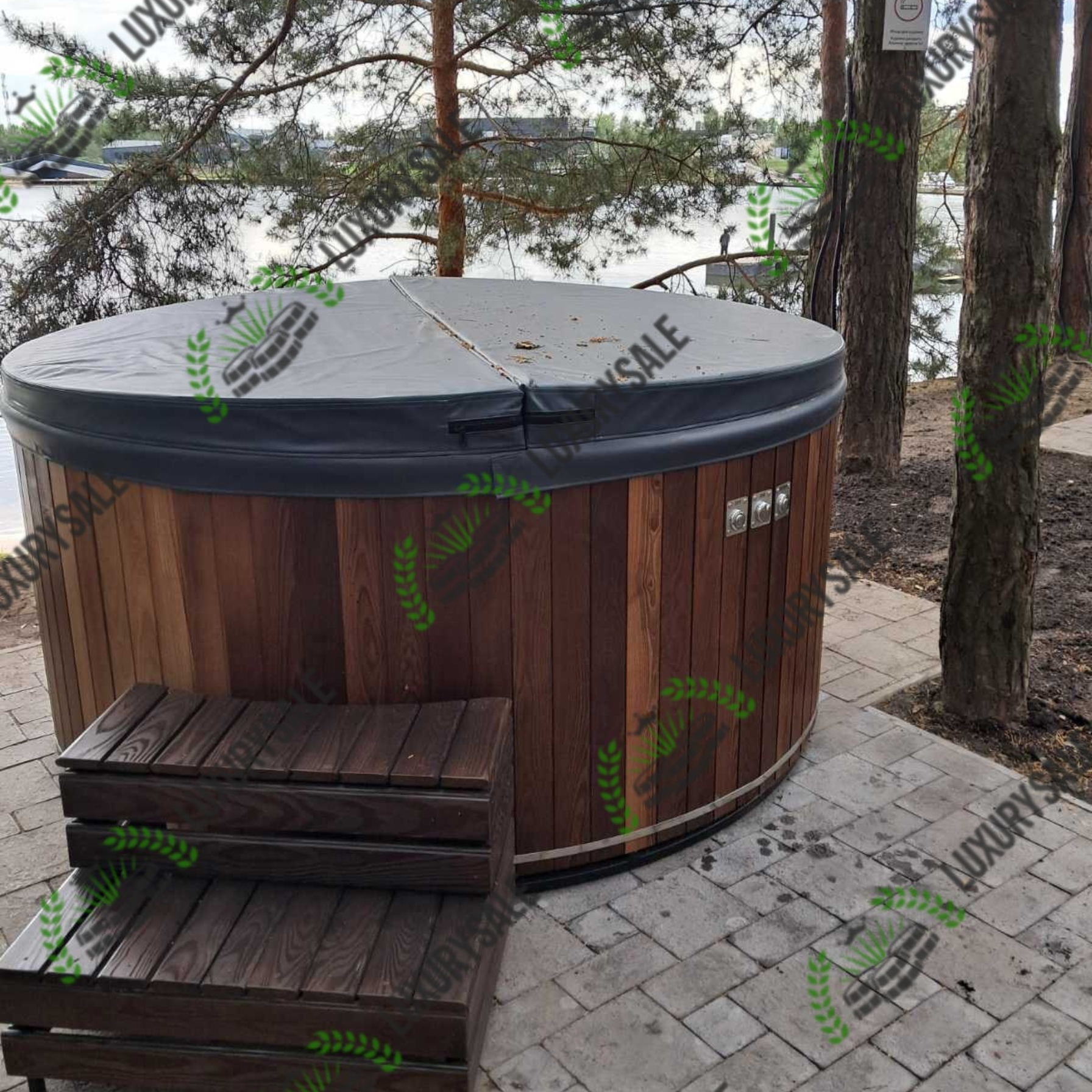 Спа-купель «Елегант плюс» забезпечує вишуканий відпочинок на свіжому повітрі – вона нагріває воду зі швидкістю не менше 20 градусів на годину, утеплена чаша довше утримує тепло, а система гідромасажу з 6 форсунок гарантує розслаблення для 5-8 осіб. Облицювання із термоясеня додає преміального вигляду, а світлодіодне підводне освітлення створює магічну атмосферу для вечірнього відпочинку.
